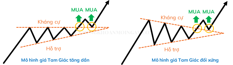 Một mô hình giá Tam Giác (Triangle) tăng dần là một mô hình biểu đồ tăng giá. Nó cho thấy thị trường trong một khoảng dừng trong một xu hướng tăng.