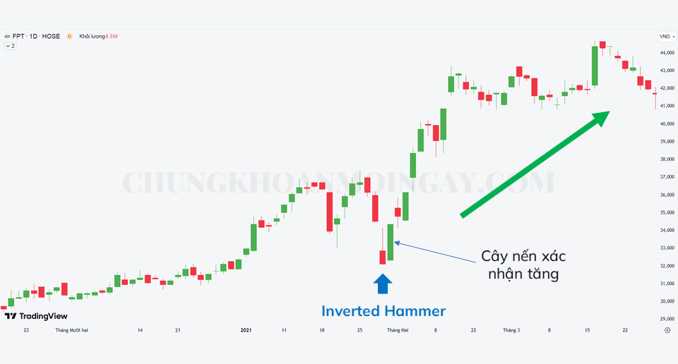 Inverted Hammer là một mô hình tăng giá. Trong một xu hướng giảm, mô hình Inverted Hammer tô điểm cho người bán. Do đó, khi Búa ngược không thể đẩy thị trường xuống, phản ứng tăng giá là dữ dội.