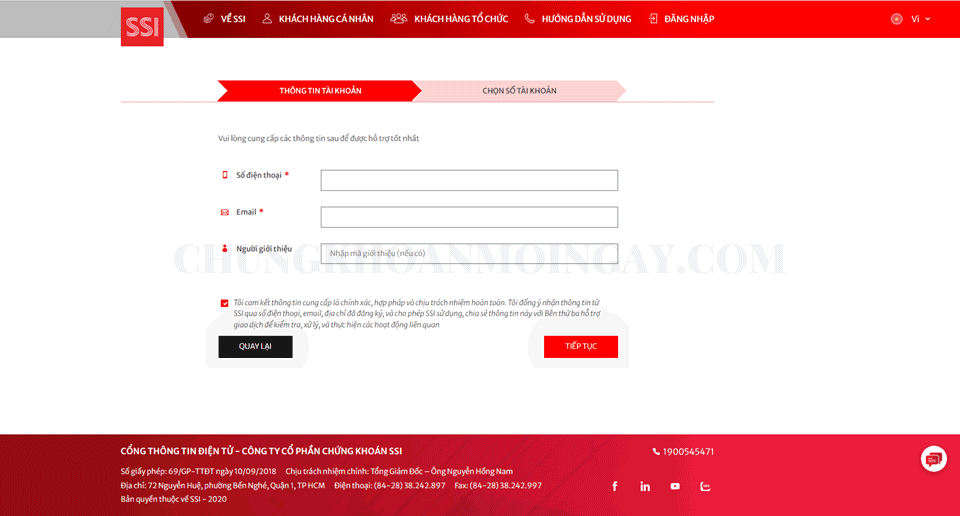 Bạn truy cập website CTCP Chứng khoán SSI để đăng ký tài khoản nhấp vô Link đăng ký.