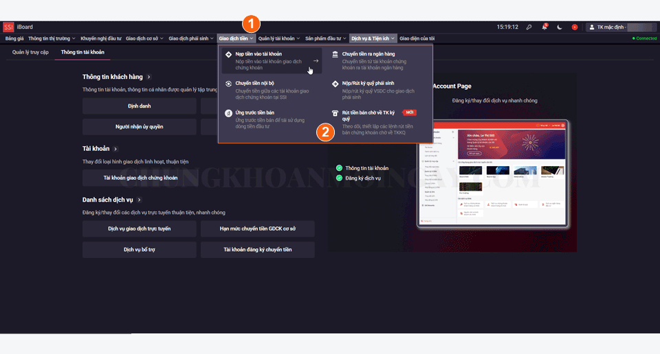 Ngoài ra, sàn SSI còn cung cấp các dịch vụ giao dịch tiền khác như:
