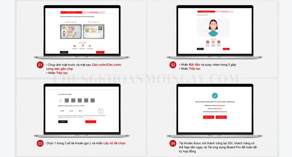 Để mở tài khoản giao dịch chứng khoán, bạn cần chuẩn bị CCCD còn hiệu lực theo quy định. Sau đó, bạn có thể trực tiếp đến một Chi nhánh hoặc Văn phòng giao dịch SSI và thực hiện theo hướng dẫn của Giao dịch viên. (Tham khảo mạng lưới quầy giao dịch của SSI TẠI ĐÂY)