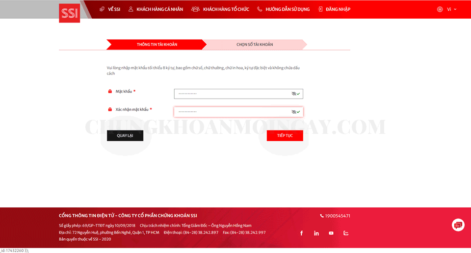 Bước 2: Thiết lập mật khẩu cho tài khoản giao dịch